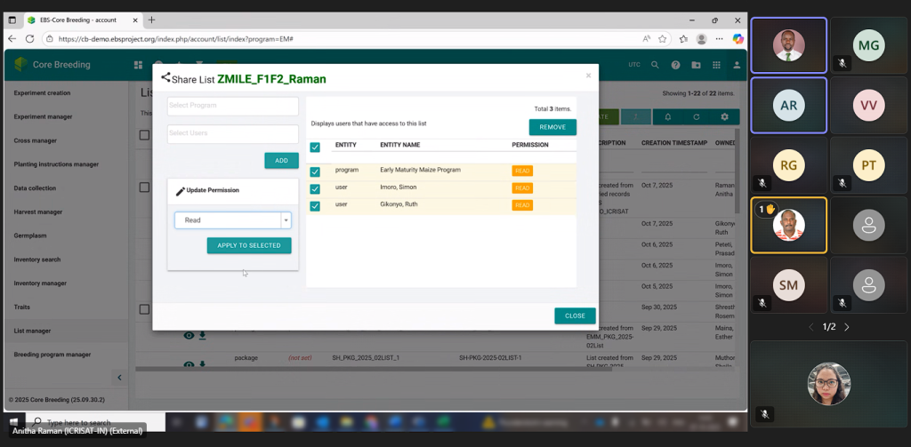 The Digital Solutions (DS) conducted an online Train-the-Trainers (TtT) program on the Enterprise Breeding System (EBS) from September 29 to October 17. The objective of the training was to provide extensive coaching to data managers from different CGIAR centers and partners on EBS features and capabilities, qualifying them to train end-users in their breeding programs.