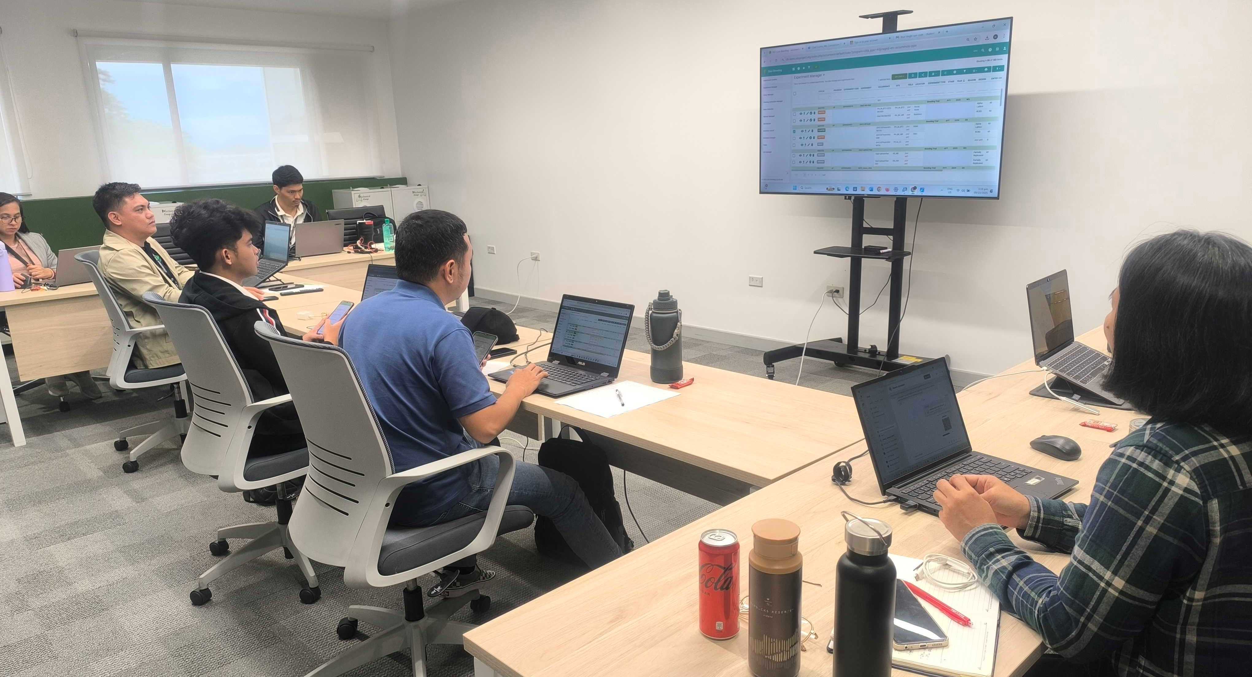 From September 8–12, 2025, the International Rice Research Institute (IRRI) hosted a Train-the-Trainer program on the Enterprise Breeding System (EBS) at NCBL Conference Room 2. The session brought together representatives from the Philippine Rice Research Institute (PhilRice), including Nichole Avanzado, Data Manager, and Rodolfo Escabarte III, Researcher.