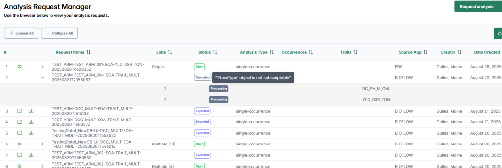 ✅ Cleaner User Experience: Residual plots are hidden for Bioflow where not applicable, with clearer job action buttons and error messages for canceled or completed requests.