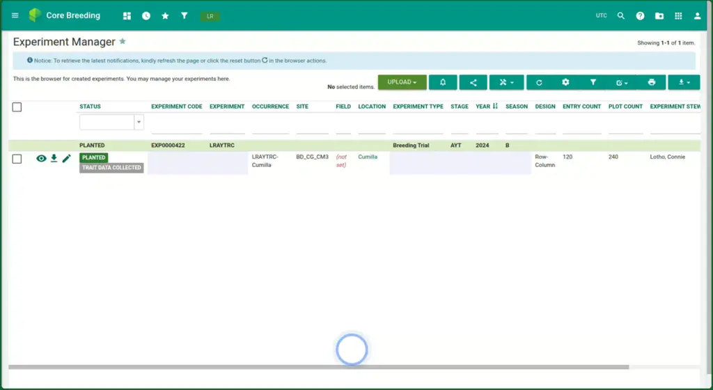 El Centro de Mejoramiento ha sido actualizado para mejorar la consistencia, el rendimiento y la usabilidad. Se realizaron mejoras en los experimentos y administrador de cruzas, carga de datos y manejo de germoplasma. Los usuarios experimentarán descargas más consistentes, una navegación más clara y un mejor rendimiento del sistema en los flujos de trabajo en las actividades diarias de mejoramiento.